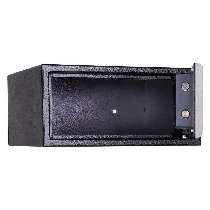 Caja fuerte para hotel fabricada en acero, diseñada con acabados exteriores de alta calidad. Ideal para hoteles, hospitales y uso residencial. Su capacidad de almacenaje la convierte en la mejor opción para el resguardo de sus valores. Incluye llave de seguridad y alimentador de energía externo. Lo mejor en cajas fuertes para hotel.