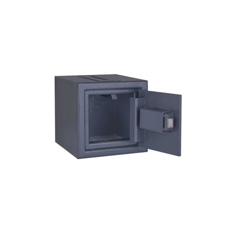 Caja Fuerte diseñada con sistema de buzón rotativo en la parte superior de la caja, lo cual permite depositar el efectivo discretamente, además de la seguridad que le brinda contar con cerradura de llave de doble control de alta seguridad. Cuenta con dos orificios en el interior para atornillarse fácilmente al vehículo, la pintura es anticorrosiva de textura corrugada.